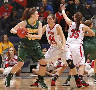 NDSU's Brooke LeMar paced all-scorers in the game with a double-double, scoring 20 points on 9-of-15 shooting while dishing out 10 assists. Marena Whittle chipped in 16 points for the Yellow and Green, with 13 of those points occurring in the second half. Whittle made a blistering 4-of-5 shots from three-point range. Holly Johnson rounded out the Bison in double-figures, scoring 15 points. She was 3-of-4 from long range and made 6-of-9 shots overall in the contest. Johnson also led NDSU in rebounding, snagging eight boards.